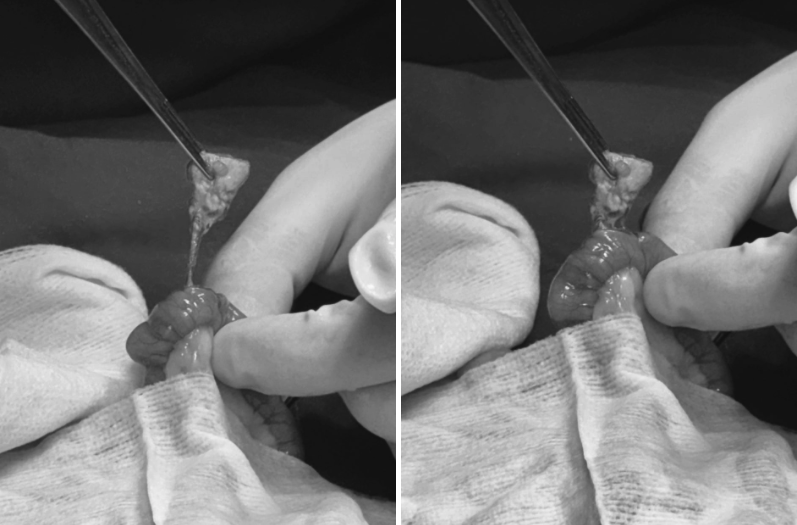 다행히도 장 괴사가 진행되기 전이어서 장절제술까지는 필요하지 않았고, 이물 제거만으로 수술을 마칠 수 있었습니다.