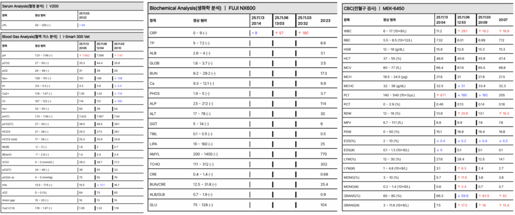 혈액 수치상 감염 및 염증이 이미 진행된 상태임을 확인할 수 있었습니다.
