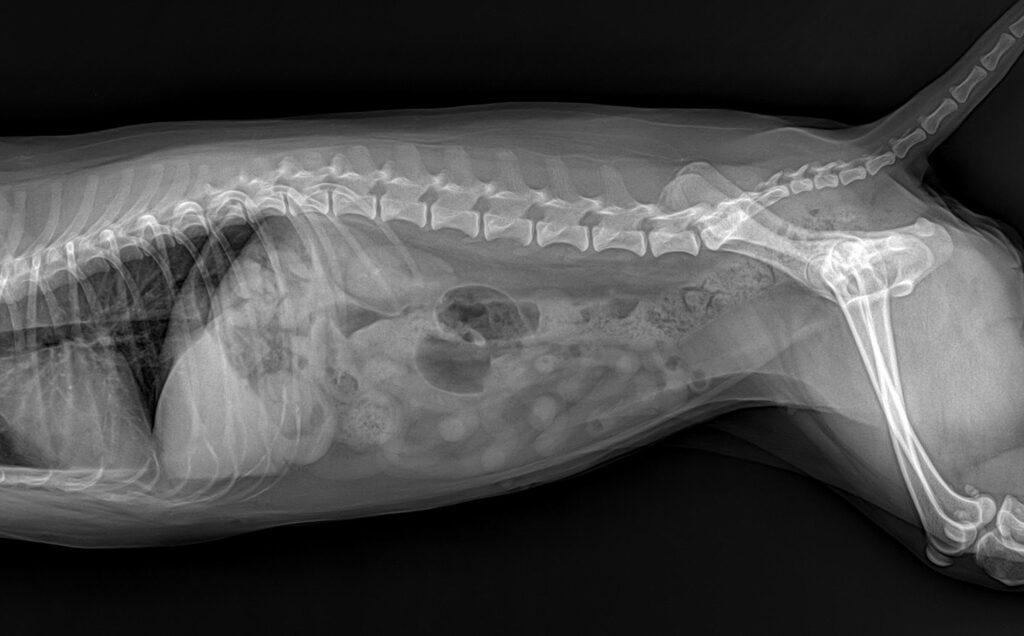 환자 복부 방사선 사진/ 출처: 라온동물메디컬센터