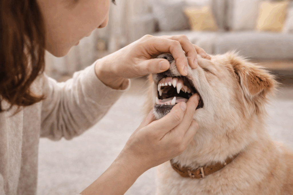 치석 침착: 어금니 바깥쪽 면에 노란색이나 갈색 찌꺼기가 보이기 시작하는가?